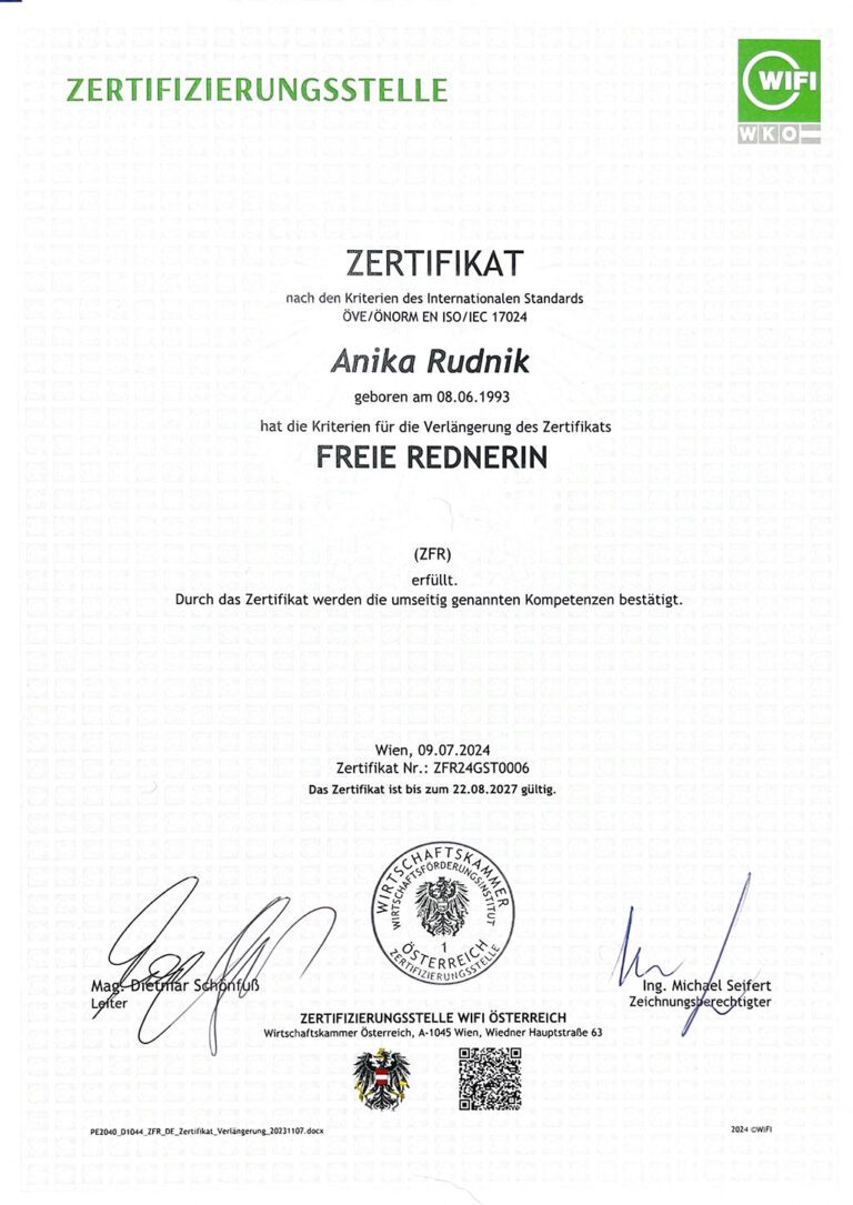 Ich habe Anika bei meiner Ausbildung zum Freien Redner kennengelernt und schnell gemerkt, dass sie durch ihre offene und warmherzige Art bei den Menschen sehr gut ankommt. Viele nette Gespräche in dieser Zeit haben mir genau diese Art bestätigt. So kann ich sie als Freie Rednerin nur jedem empfehlen.